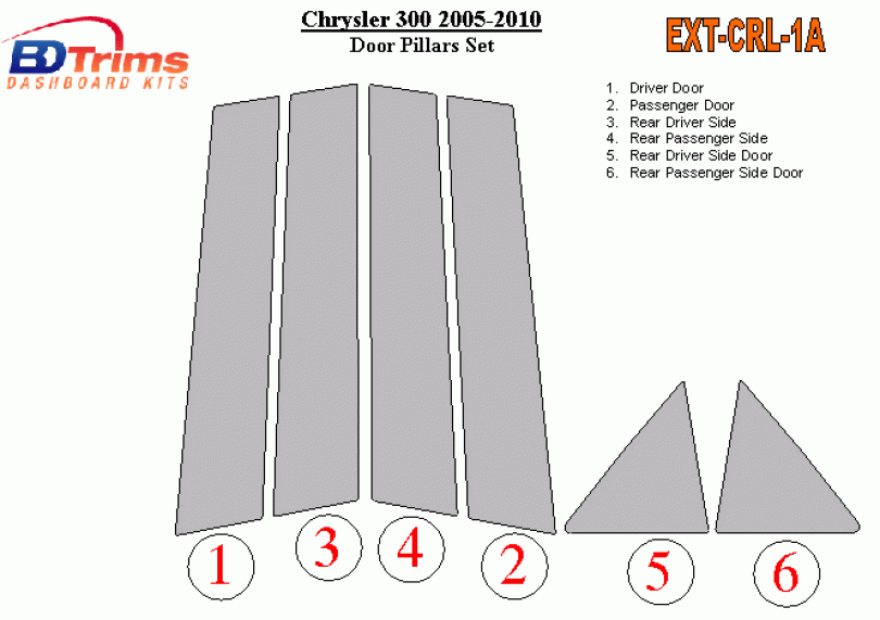 Chrysler 300 2005-2010 Exterior Door Window Pillar Post Cover Trim