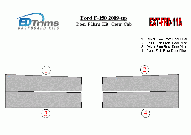 Ford F-150 2009-UP Exterior Door Window Pillar Post Cover Trim