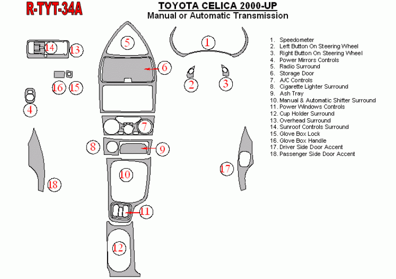 Toyota Celica 2000-UP Dash Trim Kit (RHD)