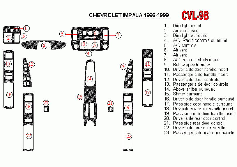 Chevrolet Impala SS 1996 - 1999 Dash Trim Kit