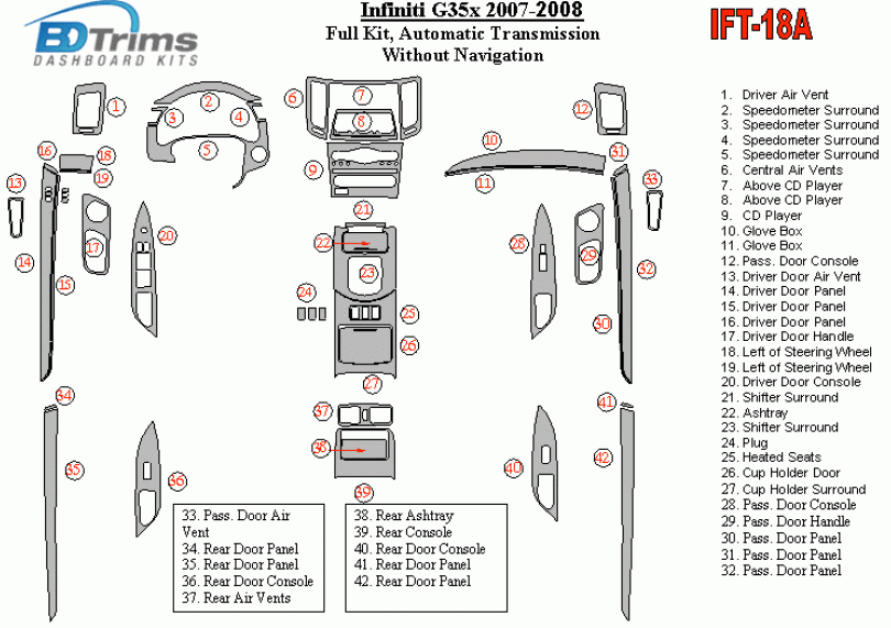 Infiniti G35 2007 - 2008 Dash Trim Kit