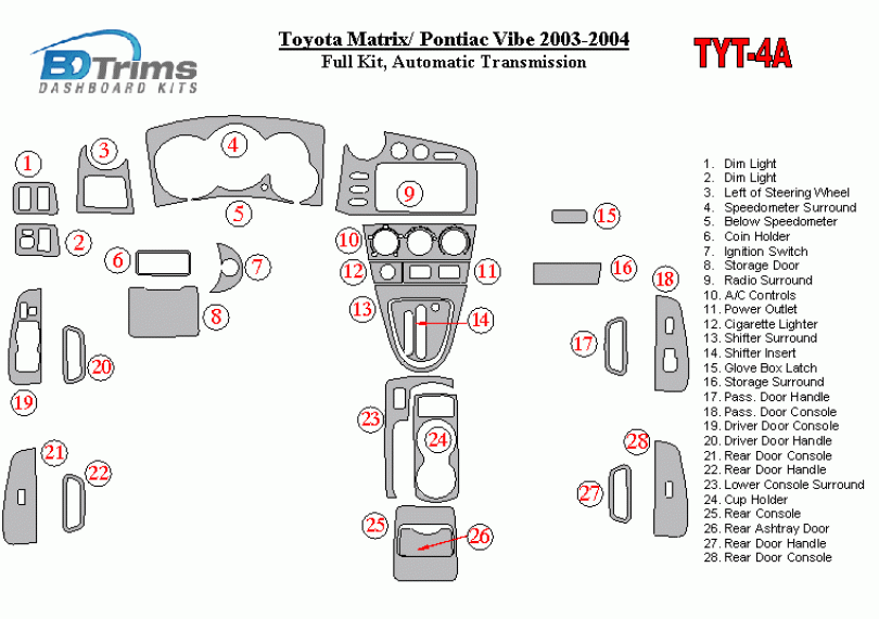 Pontiac Vibe 2003 - 2004 Dash Trim Kit