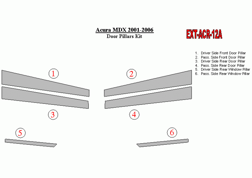 Acura MDX 2001-2006 Exterior Door Window Pillar Post Cover Trim