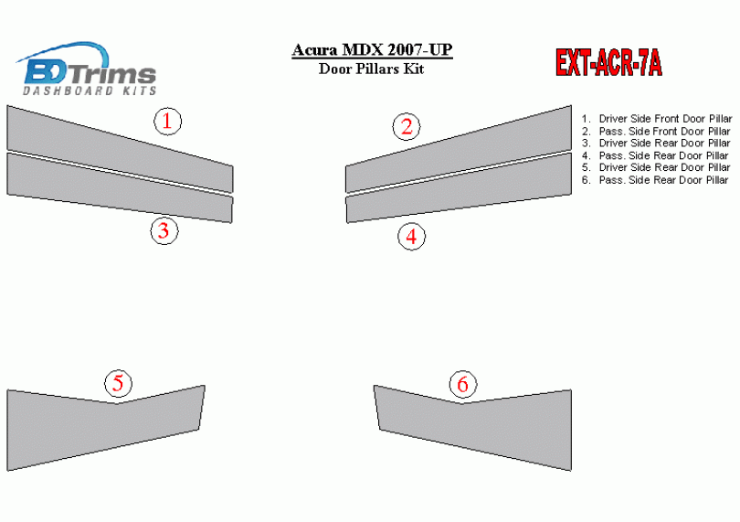 Acura MDX 2007-UP Exterior Door Window Pillar Post Cover Trim
