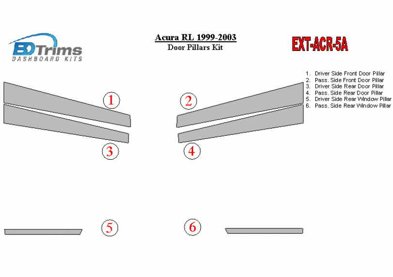 Acura RL 1999-2003 Exterior Door Window Pillar Post Cover Trim