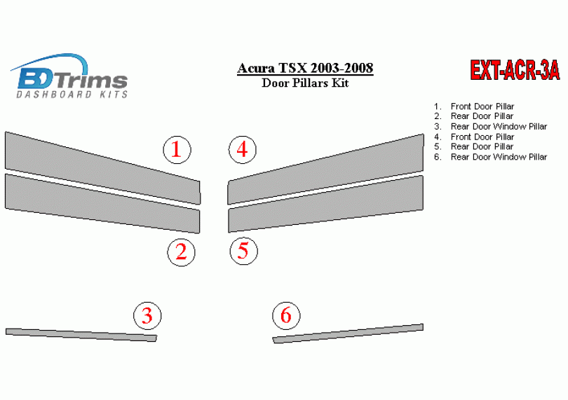 Acura TSX 2003-2008 Exterior Door Window Pillar Post Cover Trim