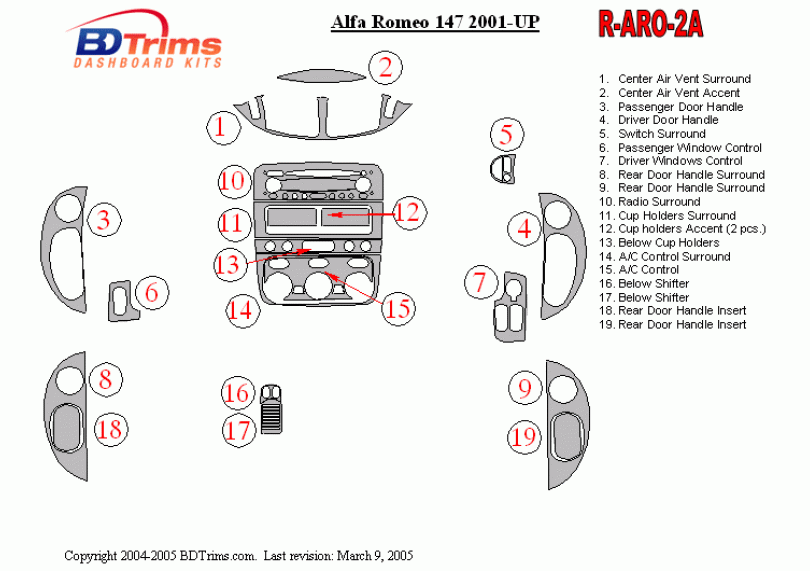 Alfa Romeo 147 2001-UP Dash Trim Kit (RHD)