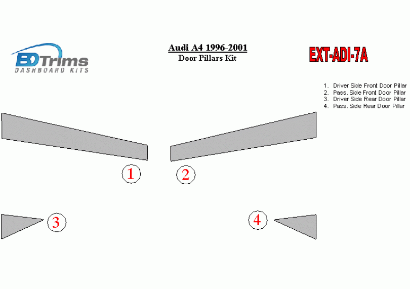 Audi A4 1996-2001 Exterior Door Window Pillar Post Cover Trim