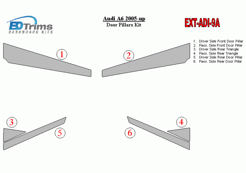 Audi A6 2005-UP Exterior Door Window Pillar Post Cover Trim
