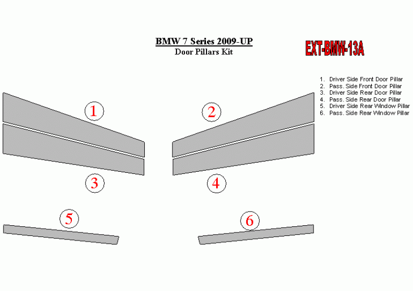 BMW 7 Series 2009-UP Exterior Door Window Pillar Post Cover Trim