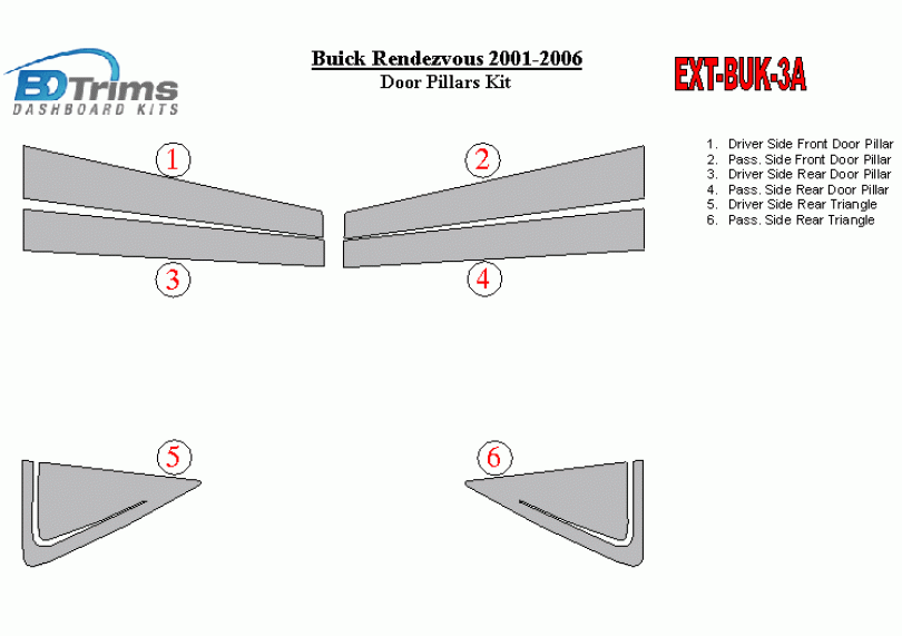 Buick Rondezvoues 2001-2006 Exterior Door Window Pillar Post Cover Trim
