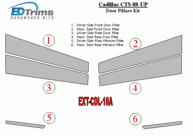 Cadillac CTS 2008-UP Exterior Door Window Pillar Post Cover Trim