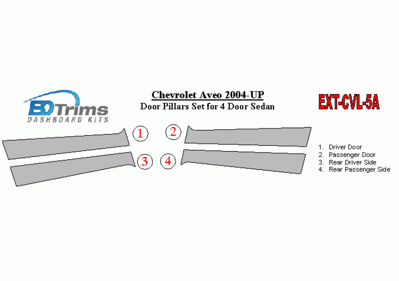 Chevrolet Aveo 2004-UP Exterior Door Window Pillar Post Cover Trim