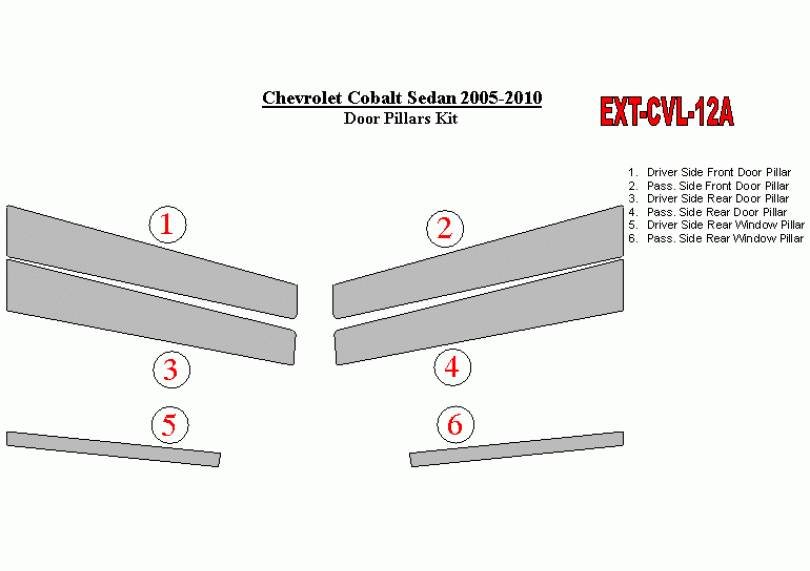 Chevrolet Cobalt Sedan 2005-2010 Exterior Door Window Pillar Post Cover Trim