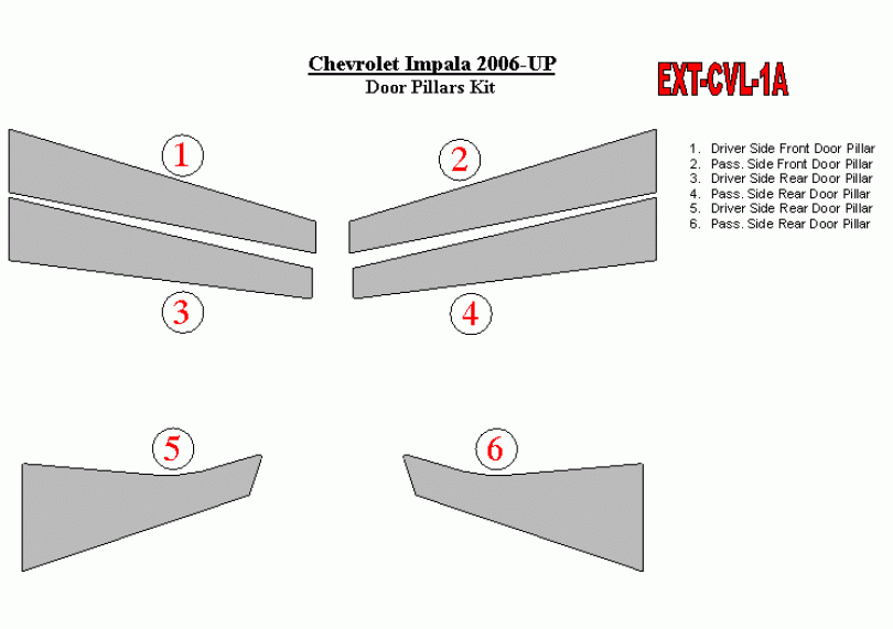 Chevrolet Impala 2006-UP Exterior Door Window Pillar Post Cover Trim