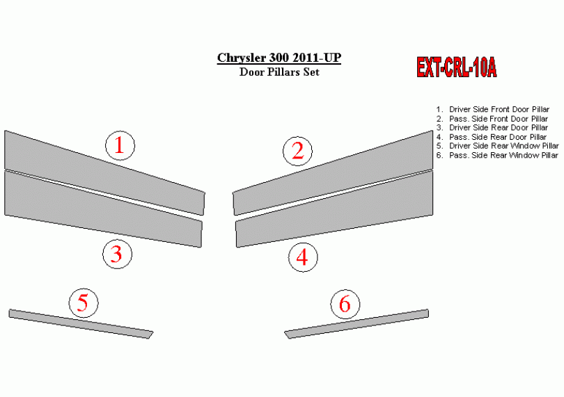Chrysler 300 2011-UP Exterior Door Window Pillar Post Cover Trim