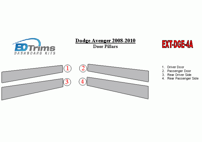 Dodge Avenger 2008-2010 Exterior Door Window Pillar Post Cover Trim