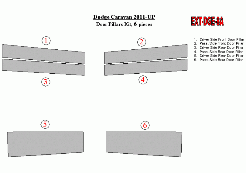 Dodge Caravan 2011-UP Exterior Door Window Pillar Post Cover Trim