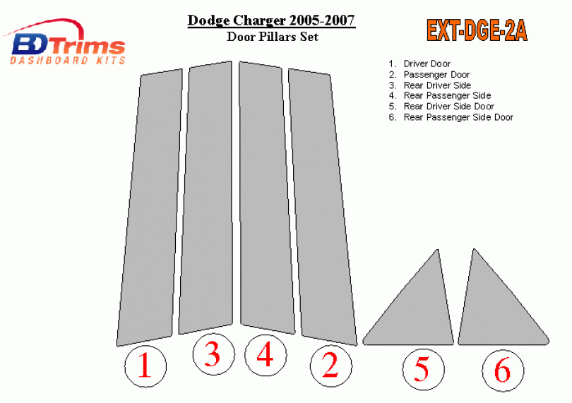 Dodge Charger 2005-2007 Exterior Door Window Pillar Post Cover Trim