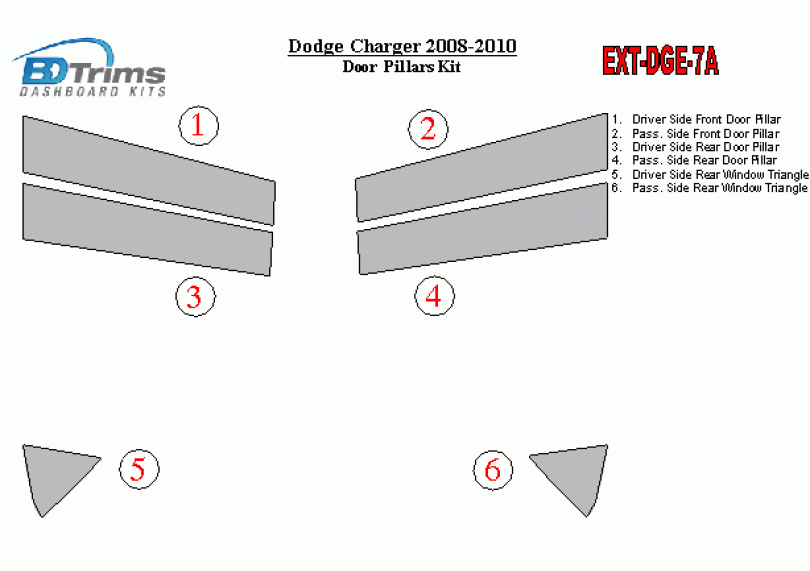 Dodge Charger 2008-2010 Exterior Door Window Pillar Post Cover Trim