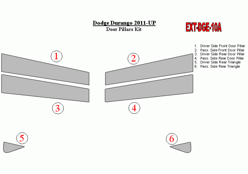 Dodge Durango 2011-UP Exterior Door Window Pillar Post Cover Trim