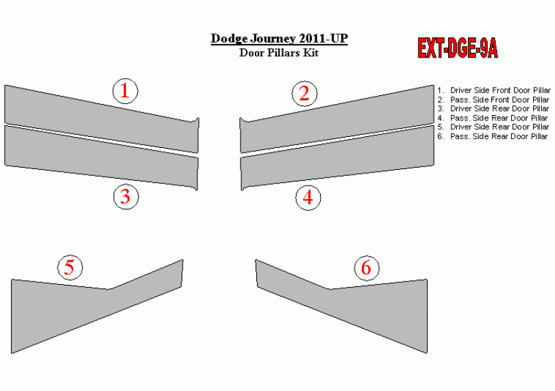 Dodge Journey 2011-UP Exterior Door Window Pillar Post Cover Trim