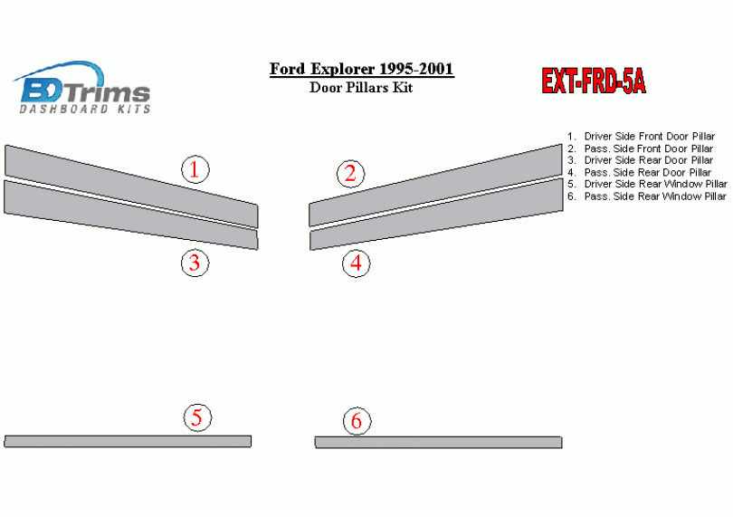 Ford Explorer 1995-2001 Exterior Door Window Pillar Post Cover Trim