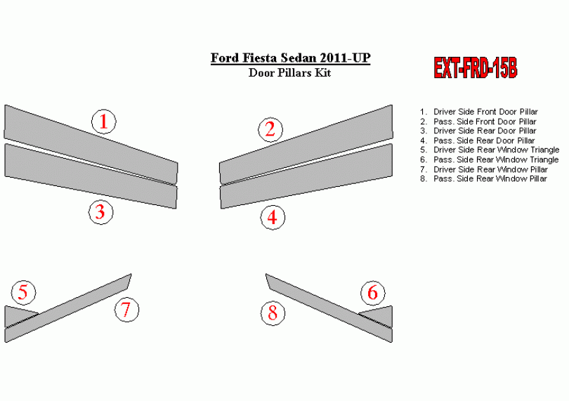 Ford Fiesta Sedan 2011-UP Exterior Door Window Pillar Post Cover Trim