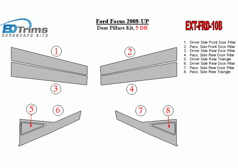 Ford Focus 2008-UP Exterior Door Window Pillar Post Cover Trim