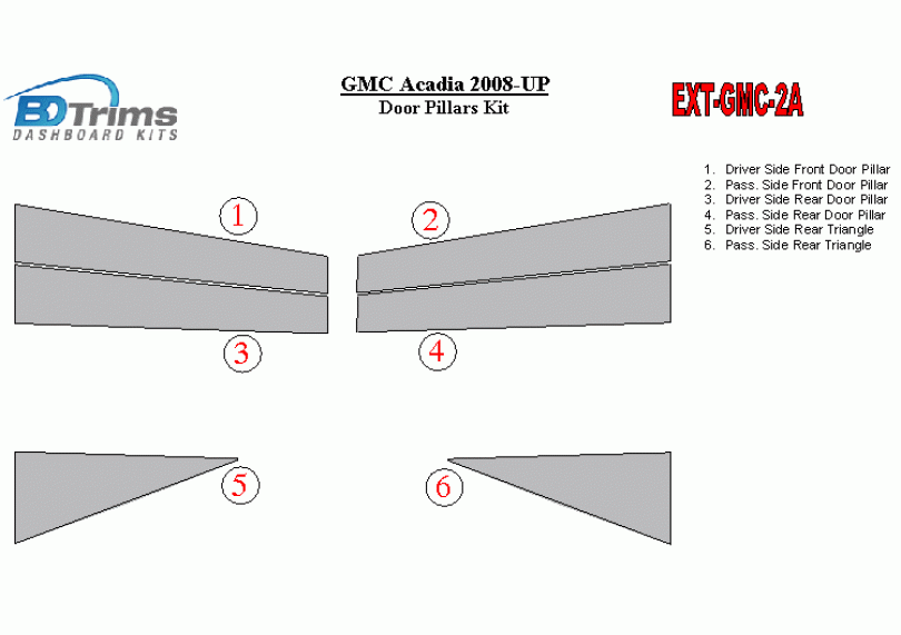 GMC Acadia 2008-UP Exterior Door Window Pillar Post Cover Trim