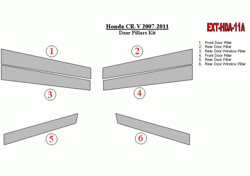 Honda CR-V 2007-UP Exterior Door Window Pillar Post Cover Trim
