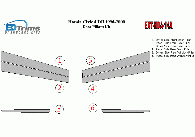 Honda Civic 1996-2000 Exterior Door Window Pillar Post Cover Trim
