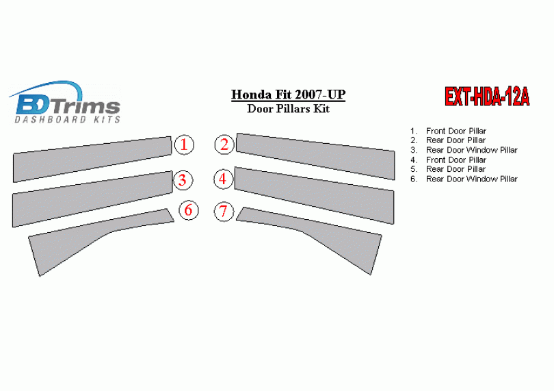 Honda Fit 2007-UP Exterior Door Window Pillar Post Cover Trim