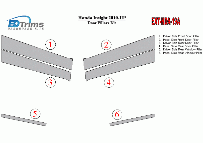 Honda Insight 2010-UP Exterior Door Window Pillar Post Cover Trim