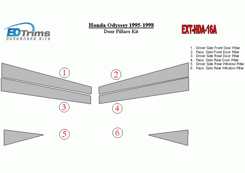 Honda Odyssey 1995-1998 Exterior Door Window Pillar Post Cover Trim