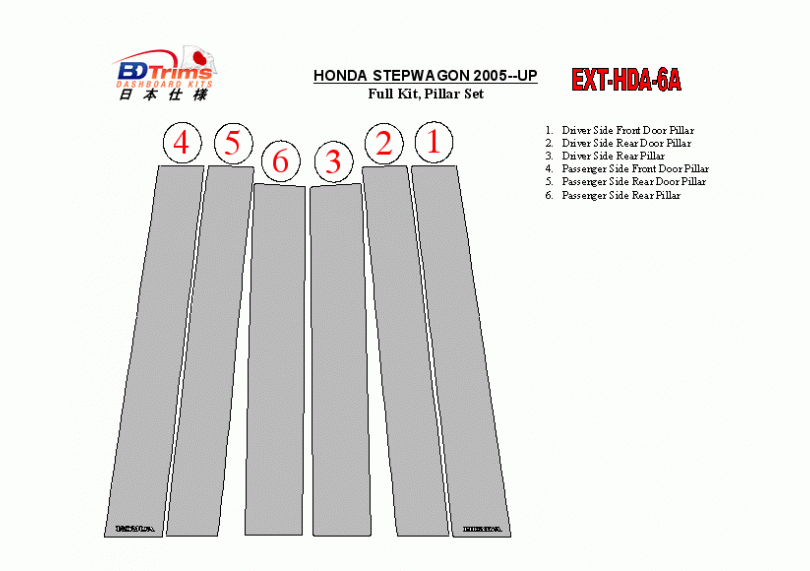 Honda Stepwagon 2005-UP Exterior Door Window Pillar Post Cover Trim