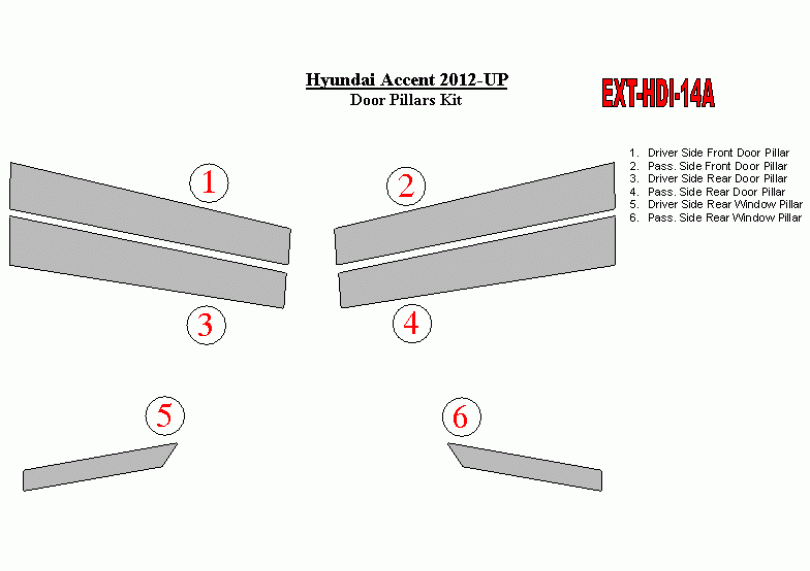 Hyundai Accent 2012-UP Exterior Door Window Pillar Post Cover Trim