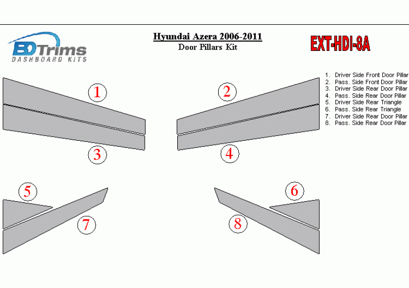Hyundai Azera 2006-2011 Exterior Door Window Pillar Post Cover Trim