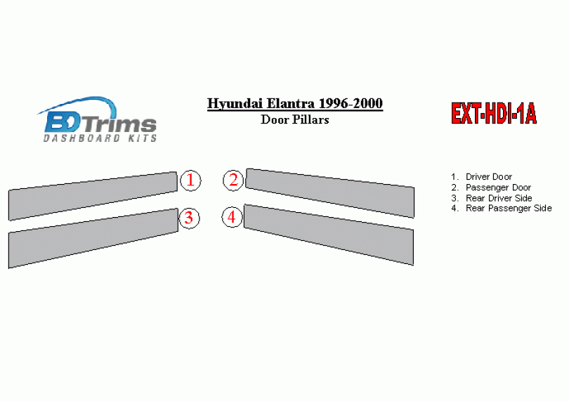 Hyundai Elantra 1996-2000 Exterior Door Window Pillar Post Cover Trim