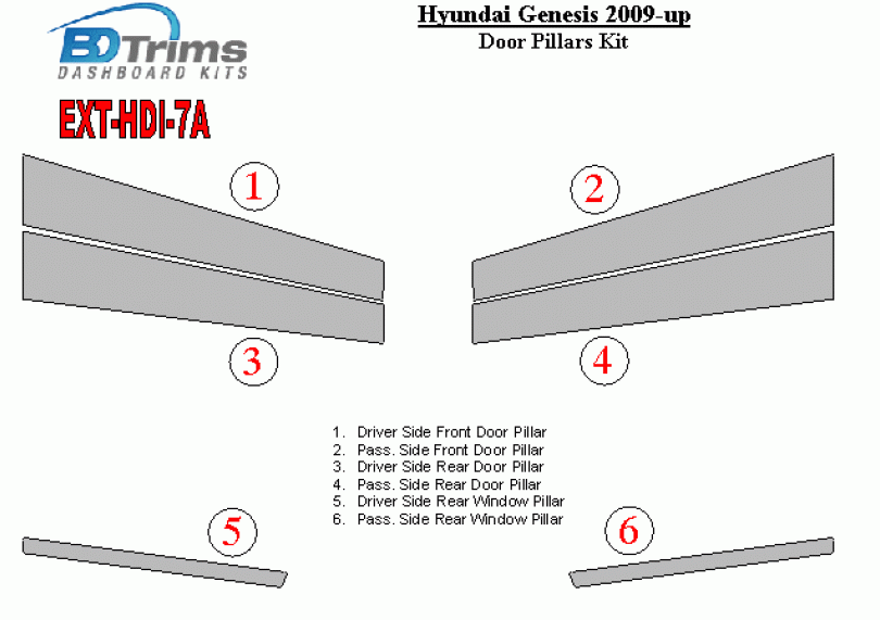 Hyundai Genesis 2009-UP Exterior Door Window Pillar Post Cover Trim