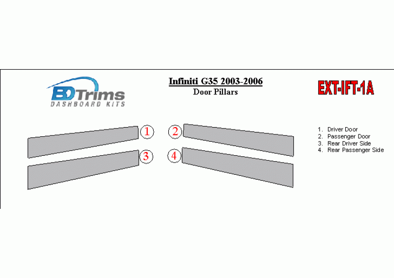 Infiniti G35 2003-2006 Exterior Door Window Pillar Post Cover Trim