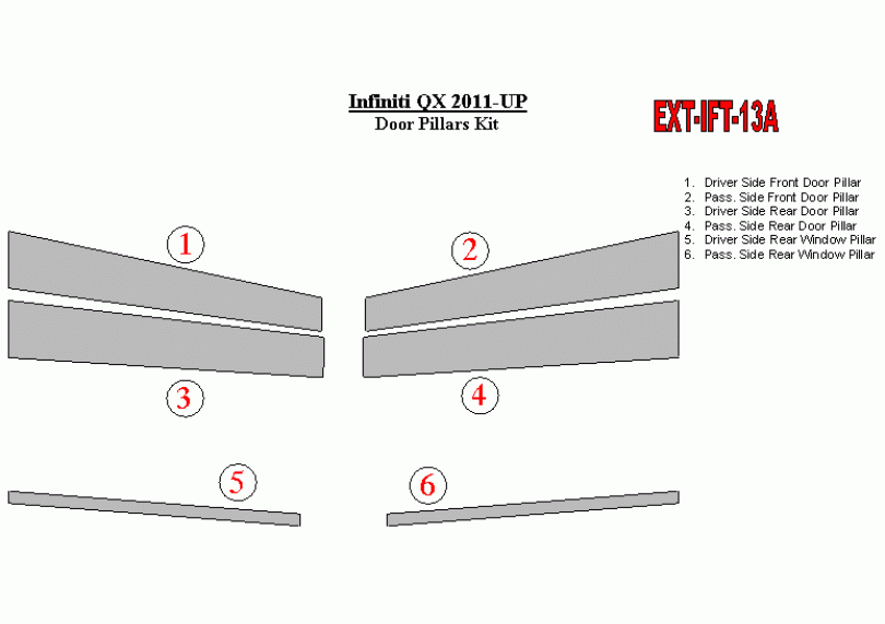Infiniti QX 2011-UP Exterior Door Window Pillar Post Cover Trim