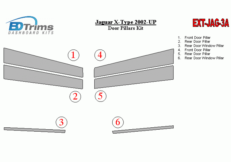 Jaguar X-Type 2002-UP Exterior Door Window Pillar Post Cover Trim