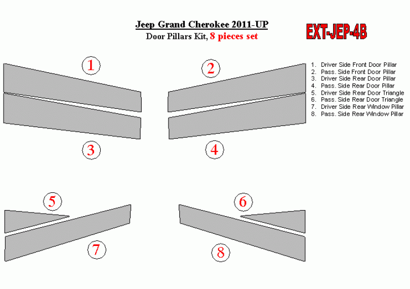 Jeep Grand Cherokee 2011-UP Exterior Door Window Pillar Post Cover Trim
