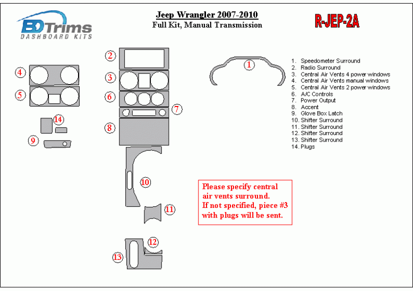 Jeep Wrangler 2007-2010 Dash Trim Kit (RHD)