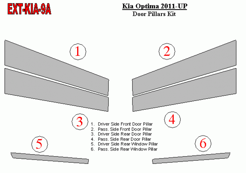 KIA OPTIMA 2011-UP Exterior Door Window Pillar Post Cover Trim