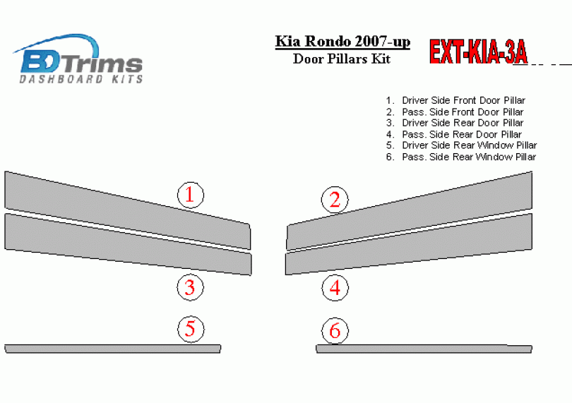 KIA Rondo 2007-UP Exterior Door Window Pillar Post Cover Trim