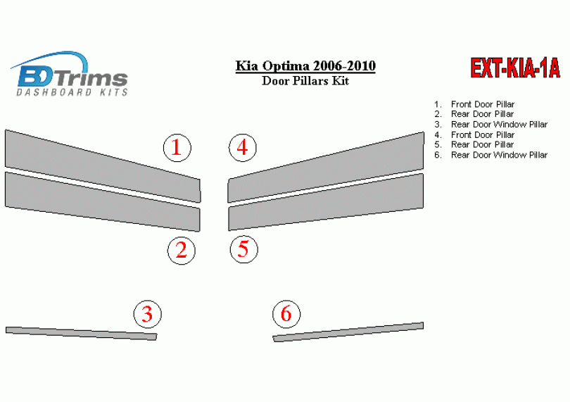 Kia OPTIMA 2006-2010 Exterior Door Window Pillar Post Cover Trim