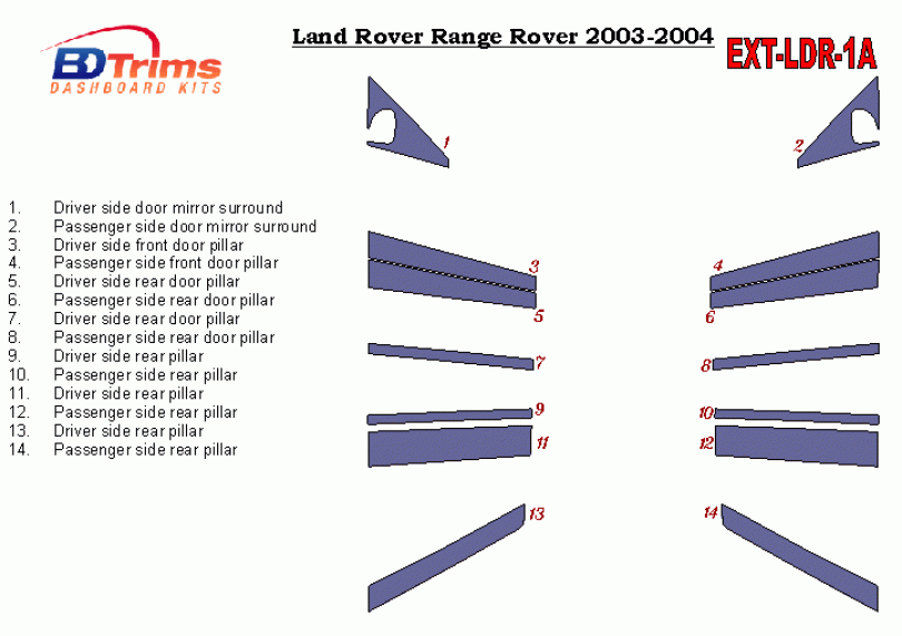 Land Rover Range Rover 2003-2004 Exterior Door Window Pillar Post Cover Trim