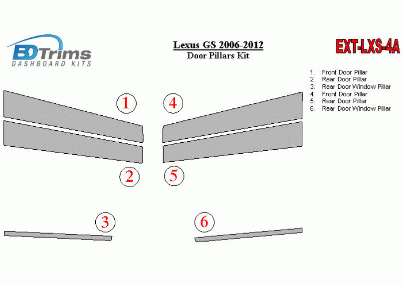 Lexus GS 2006-UP Exterior Door Window Pillar Post Cover Trim